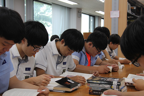 대구 경상고(교장 권효중)가 지난 13~15일 3일간 전학년을 대상으로 독서 페스티벌을 열었다.) 이번 행사는 기말고사 이후 취약시기에 독서활동을 통해 학생들의 독서활동을 늘이고, 진로를 탐색하는 기회를 제공하기 위해 마련됐다. 이 학교는 이 기간 동안 한양대 이권우 교수를 초청, '올바른 독서를 위한 특강'을 마련했다. 이 교수는 "급변하는 사회에서 학생들이 준비해야 하는 것은 독서"라며 "독서를 통해 질문할 수 있는 능력을 기를 수 있다"고 강조했다. 이 학교는 또 학생들이 개인의 진로희망 관련 도서와 기타 인문학 및 자기계발 도서 중 2권 이상의 책을 읽은 후 교과 교사들의 컨설팅을 받아 독서활동 기록지를 작성하고, 이를 담임교사와 교과담당 교사가 교과·창의적 체험활동·동아리 활동 등의 비교과 활동과 연계해 학교생활기록부에 기재하도록 할 계획이다. 그리고 진로 탐색에 도움이 되는 책 12권을 골라 학생들이 독서를 통해 진로를 탐색하는 시간도 마련했다. 아울러 학생들이 독서에 보다 흥미를 가질 수 있도록 '책 제목 끝말잇기', 책 제목을 맞추는 퍼즐 게임인 '초성의 달인' 등의 프로그램도 진행했다. 류상현 기자