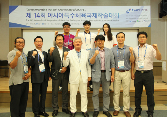 영남대 특수체육교육과가 특수체육 분야의 아시아 메카로 우뚝 섰다. 최근 영남대 천마아트센터에서 열린 제14회 아시아특수체육학회 국제학술대회에서 영남대 교수와 학생들이 연구상과 학술상, 공로상 등을 동시에 수상하며 국내외 특수체육 분야 전문가들로부터 역량을 인정받았다. 이번 국제학술대회 위원장을 맡은 영남대 특수체육교육과 김한철 교수가 연구상을 수상한 것을 비롯해 정연택 교수와 김춘종 교수가 공로상을 받았으며, 대학원생인 김경호(체육학전공 박사3기) 씨는 학술상을 수상했다. 특히, 특수체육교육과 학부생들은 이번 국제학술대회의 성공적 개최를 위한 자원봉사에 참여해 국내외 참가자들로부터 좋은 평가를 받아 대회 봉사상을 수상하기도 했다. 지난달 29일부터 31일까지 3일간 열린 이번 학술대회는 홍콩, 일본, 중국, 대만, 미국, 독일 등 12개국에서 총 400여 명의 대학교수, 대학원생 및 분야 전문가들이 참석해 80여 편의 논문을 발표하는 등 역대 최대 규모로 치러졌다. 또 이번 학술대회에는 네팔, 몽골, 카자흐스탄, 미얀마, 필리핀 등 저개발국가에서 전문가 10여명을 초청해 특수체육의 학문적 공유와 가치를 전수할 글로벌 특수체육아카데미를 개최해 큰 호응을 얻었다. 한편, 이번 학술대회에서 박기용 영남대 특수체육교육과 교수는 아시아특수체육학회 회장 연임이 확정됐다. 아시아특수체육학회 회장 연임은 사상 최초이며, 박 회장의 임기는 2018년 7월까지다. 박기용 회장은 "2017년에는 세계특수체육학회를 영남대에서 개최할 예정"이라며 "한국전통 스포츠를 저개발국가에 보급하는 것은 물론, 한국의 특수체육 발전상과 학문적 우수성, 특수체육의 변화와 미래 발전 가능성을 공유하는데 영남대가 앞장서겠다"고 말했다.