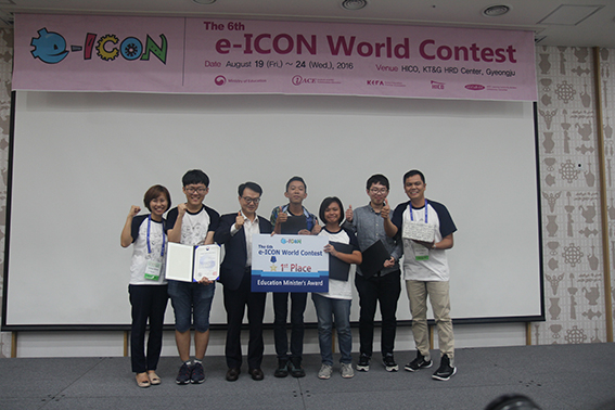 대구과학고(교장 엄기성) 1학년 김준원, 전형준 학생이 지난 19일부터 24일까지 6일간 경주에서 열린 제6회 이-아이콘(e-ICON) 세계대회에서 1위를 차지했다. 이-아이콘 세계대회는 글로벌 교육현장에서 활용 가능한 융합교육형 어플리케이션을 개발하고 공유하는 대회로 일본, 중국, 페루 등 해외 15개 팀과 국내 시도교육청 대표 16개 팀이 참가했다. 이번 대회에서 두 학생은 필리핀 학생 2명과 함께 글로벌 팀을 구성해 알고리즘 교육용 어플리케이션인 알고리모스(ALGORITHMOS)로 1위에 올라 교육부장관상을 수상했다. 대구과학고 글로벌 팀이 제작한 알고리모스는 알고리즘 교육용 어플리케이션으로 사용자가 직접 디자인한 알고리즘과 어플리케이션 인공지능(AI)이 디자인한 알고리즘을 대결방식으로 진행해 알고리즘의 우수성을 평가한다. 또 사용자가 디자인한 두 개의 알고리즘 간의 우수성도 비교·평가할 수 있다. 이번 대회에 참가한 세계 각국의 교사, 학생들도 이를 알고리즘 수업에 활용하고 싶다며 찬사를 보냈다. 이번 대회에서 입상한 어플리케이션은 온라인 앱스토어 등재 및 무료로 배포될 예정이며, 오는 9월에 서울 COEX에서 개최될 '2016 이러닝 코리아'에서 시연된다. 김준원 학생은 "세계 대회에 참가해 외국 학생들과 협력하면서 많은 것들을 배울 수 있었다. 앞으로도 정보과학 및 ICT 분야에서 글로벌 리더가 되도록 더 열심히 연구하고 싶다"고 말했다. 대구과학고 엄기성 교장은 "소프트웨어가 세상을 변화시키고 있다. 탄탄한 과학기술 기반 위에 창의적인 아이디어로 세상을 변화시키는 글로벌 리더로 자리매김 할 수 있도록 정보과학 및 소프트웨어 교육을 적극적으로 지원하겠다"고 말했다. 류상현 기자