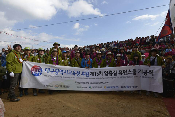 네팔에 대구 교육계가 지원하는 휴먼스쿨이 첫 삽을 떴다. '휴먼스쿨' 방문단은 지난 달 30일 오전 10시 네팔 심파니 마을에서 현지 학교장, 마을주민이 참석한 가운데 제15차 휴먼스쿨 건립을 위한 기공식을 가졌다. 오석환 대구시교육청 부교육감을 단장으로 한 방문단에는 초·중·고 학생 대표와 산악인 엄홍길 대장 등 29명이 참여했다. 기공식 이후 휴먼스쿨 방문단은 네팔 현지 학생들과 윷놀이, K-POP 공연, 하회탈 쓰기, 네팔 전통체험 등을 통해 대한민국을 알리고 네팔을 이해하는 문화 교류의 시간을 가졌다. 대구시교육청은 지난 4월 엄홍길 휴먼재단, 농협 대구본부 등과 사랑나눔 소액기부문화 운동 활성화 및 네팔 휴먼스쿨 건립 후원을 위한 협약을 체결하고, 10월 까지 사랑나눔 동전 모으기 운동을 전개한 바 있다. 그 결과 대구 관내 302개교와 교육청 직원, 샤프란 봉사단체, 농협 직원 등 5만 여명이 참여하여 네팔 휴먼스쿨 건립을 위한 후원금 4억 3천여만원이 마련됐다. 새로 지어질 제15차 휴먼스쿨은 내년 연말 준공 예정이며, 사랑나눔운동 참여자 한 사람 한사람의 지구촌 이웃사랑 실천정신을 기념하여 학교 벽면에 그 이름을 새길 예정이다. 또 대구교육공동체의 작은 나눔이 모여 제15차 휴먼스쿨이 건립되기까지의 전 과정은 영상으로 제작돼 대구 학생들의 휴먼교육을 위해 활용된다. 류상현 기자