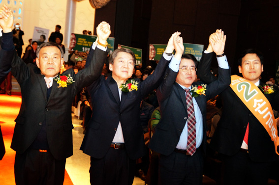 국민의당 안철수 전 대표는 10일 "이번 대선은 저 안철수와 더불어민주당 문재인 전 대표와의 대결"이라며 "이 싸움에서 제가 반드시 이긴다"고 강조했다. 안 전 대표는 이날 경북 안동시 리첼호텔에서 열린 '경북도당 개편대회 및 당대표 후보 합동연설회'에서 이같이 밝힌 뒤 "제가 이길 이유를 말씀드리자면 100가지도 넘는다"고 주장했다. 또 "이번에 정권교체를 할 수 있는 자격이 있는 당은 국민의당과 민주당 뿐"이라며 "국민의당에서 제가 후보가 되고 민주당에서 문재인 전 대표가 후보가 된다면 이 싸움에서 이길 자신이 있다"고 역설했다. 이어 "이번 대선은 개혁과 수구의 대결"이라며 "수구세력이란 오늘 할 수 있는 개혁을 내일로 미루는 사람, 개혁입법이 위헌 소지가 있다고 시도조차 하지 않는 사람이 바로 수구"라고 정의했다. 지금 시대의 흐름을 분권이라고 지적한 안 전 대표는 "권력이란 골고루 나누고 서로 견제해야 한다"며 "그것이 국민의당이 시도하고 있는 다당제"라고 말했다. 특히 "다당제의 존립근거는 국회의원 선거제도 개편 및 대통령 결선투표제"라며 "최소한 50% 이상 지지받는 사람이 대통령이 돼야 한다는 것이 국민의당이 주장하고 있는 대통령 결선투표제"라고 강조했다. 안 전 대표는 또 "박근혜 정권을 도운 사람이 다음 정권을 꿈꿔서는 안 된다"며 바른정당을 겨낭한 뒤 "바른정당이 책임지는 방법은 불공정한 구조를 깨는 개혁에 동참하는 것"이라고 주장했다. 이어 열린 당대표 후보 합동연설회에는 문병호, 손금주, 황주홍, 김영환, 박지원 후보가 등장해 자신이 안철수 전 대표를 도와 대권을 창출할 수 있는 당대표 적임자라며 지지를 호소했다.