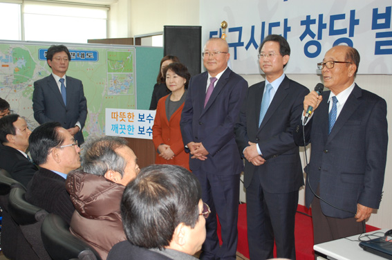 바른정당 대구시당 창당발기인대회가 10일 오후 2시 대구 동구 유승민 의원 사무소에서 전 국회의원인 박승국·류성걸·김희국·권은희 공동 창당준비위원장을 비롯해 발기인 200여명이 참석한 가운데 열렸다. 대구에서 기초자치단체장에 이어 지방의원들의 새누리당 탈당 선언이 줄을 잇고 있는 가운데 이날 창당 발기인대회에 이어 오는 18일 시당 창당대회가 예고돼 추가 탈당의 분수령이 될지 추이가 주목된다. 지난 9일 강대식 동구청장과 윤순영 중구청장에 이어 임인환 대구시의원이 새누리당을 탈당을 선언하고 바른정당에 참여하기로 했다. 앞서 유승민 의원과 함께 새누리당을 동반 탈당한 윤석준 시의원에 이어 시의원으로서는 두 번째다. 기초의회에서도 차수환 동구의회 의장, 이재숙·서정해·하중호·정인숙 동구의원, 홍경임·조규화·박소현·김태원 수성구의원 등이 새누리당을 탈당하는 등 러시조짐을 보이고 있다. 하지만 새누리당 소속 대구 8명, 경북 12명 등 전체 20명의 국회의원 가운데 추가 탈당은 이뤄지지 않아 신당 효과가 '찻잔 속 태풍'이라는 지적도 있다. 대구 의원 중에는 김상훈(대구 서구), 곽대훈(대구 달서갑), 정태옥(대구 북구갑) 의원과 경북의 강석호(영양·영덕·봉화·울진) 의원의 참여가 거론되고 있지만 본인들은 뚜렷한 입장을 유보하고 있는 상태다. 한편 창당발기인대회가 진행되고 있는 시각, 유 의원 사무실 입구에는 박사모 등 보수단체 회원 30여명이 유승민 의원 등을 비난하는 구호를 외쳤다.