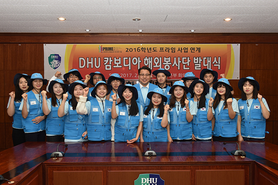 대구한의대학교(총장 변창훈)가 겨울방학을 맞아 학생들의 봉사활동을 통한 인성 함양과 글로벌 리더 양성을 위해 '2016학년도 동계 캄보디아 프라임봉사단' 발대식을 가졌다. 봉사단은 2월 6일부터 16일까지 11일 동안 캄보디아 프놈펜 트모다 초등학교와 껀달지역 그룹홈 보육시설에서 봉사활동을 진행한다. 서류심사와 면접을 통해 선발된 학생과 직원 17명으로 구성된 프라임봉사단은 예절교육, 봉사마인드교육, 현지 문화 및 봉사활동 기관 소개, 캄보디아 생활언어 등 5차례의 기본교육을 받았다. 프라임봉사단은 트모다 초등학생과 그룹홈 보육아동들을 대상으로 뀬풍선, 부채, 에코백 등을 활용한 미술교육 뀬비누와 손소독제, 치아모형 등을 이용한 보건위생교육 뀬봉사단과 초등학생들이 함께하는 미니올핌픽 뀬태권도 시범 뀬벽화작업 뀬시설보수 및 점검 등의 노력봉사를 실시하게 된다. 변창훈 총장은 "캄보디아는 보건, 위생, 의료 환경이 열악한 지역으로 이번 봉사활동을 통해 캄보디아 아동들에게 건강한 생활과 희망을 줄 수 있도록 최선을 다해줄 것을 부탁했으며, 특히 봉사단원들은 무더운 날씨와 어려운 여건속에서도 사랑을 전하는 뜻 깊은 시간이 되길 바란다"고 말했다. 강을호 기자