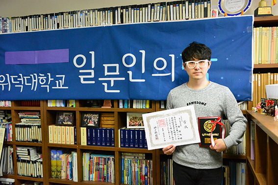 위덕대학교 일본언어문화학과 3학년에 재학 중인 김현욱학생이 지난해 11월 말에 일본에서 실시한 학생 단가(短歌) 콩쿠르에 응모하여 고베 신문사상을 수상했다. 일본에서 실시한 일본 학생 단가(短歌) 콩쿠르는 차세대를 이끌어 갈 젊은이들에게 단가(短歌)를 익히고 계승하기 위한 것을 목적으로 시작하여 지난해 22회를 맞이한 대회이다. 이 대회에 일본언어문화학과 김현욱 학생이 응모를 하게 된 계기는 일본어 전공수업인 '일본어작문' 시간에 담당교수인 이마이 리에코 교수가 정보를 제공하여 단가(短歌)를 지어 응모했다고 한다. 이번 콩쿠르에는 일본 전역에서 6,965수가 응모되었으며, 일본 단가(短歌)의 제일인자인 사사키 유키쯔나(佐木幸綱) 와세다대학 명예교수가 심사를 했다. 그 결과 김현욱 학생 작품이 선정되어 수상한 김현욱학생이 지은 단가(短歌)는 "愛しらず一人で生きる一匹のオオカミ本物を追う"로 한국어로 번역을 하면 "사랑을 모른 채 살아가는 한 마리의 늑대, 진정본인의 사랑관, 연애관"을 그렸다고 한다. 김종오 기자