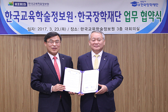 한국장학재단(이사장 안양옥, 이하 '재단')과 한국교육학술정보원(원장 한석수, 이하 'KERIS')가 지난 23일 한국교육학술정보원 회의실에서 정보기술 교류 활성화 및 교육복지확대를 위한 업무협약을 체결했다. 이번 업무협약은 안양옥 이사장, 한석수 원장과 기관 관계자들이 참석한 가운데 양 기관의 정보기술 인력 교류 및 인터넷 정보보호 등에 대해 협력해 나가기 위해 마련됐다. 업무협약의 주요내용은 양 기관의 정보기술인력 상호 교류 및 전문가 양성 교육 협력, 인터넷 침해사고 대응관련 정보보호 협력, 국가 교육근로장학생의 직업체험 기회 제공 및 취업 역량 제고, 교육복지확대를 위한 교육콘텐츠 교류 등이다. 두 기관은 또 대구 이전 공공기관 간 네트워크를 구축하고, 지역 인재 양성에도 기여할 예정이다. 안양옥 이사장은"교육, 학술연구 분야 정보화 전문기관인 KERIS와의 협약으로 인터넷 서비스를 기반으로 운영되는 재단 장학금 제도의 전문성을 강화하게 될 것"이라며, "향후 교육근로장학생들이 고품질 교육행정 서비스를 제공하는 KERIS에서 직업체험을 가질 수 있도록 하겠다"라고 말했다. 한석수 원장은 "KERIS의 ICT 전문 기술과 재단의 대학생 DB 및 콘텐츠를 활용하면 좋은 고등교육 협업 모델을 만들 수 있을 것"이라며,"KOCW나 RISS와 같은 고등교육 서비스에 많은 대학생들이 참여하여 혜택을 받을 수 있도록 두 기관이 힘을 합쳐주기를 바란다"고 말했다. 유은상 기자