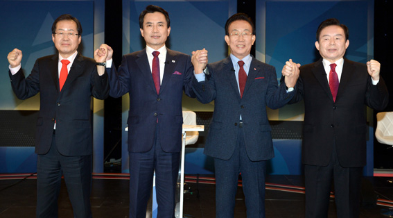 자유한국당 대선후보 선출을 위한 27일 TV토론회에서 비박계 후보인 홍준표 경남지사와 친박계 후보인 김진태 의원, 이인제 전 최고위원, 김관용 경북지사가 난상토론을 벌였다. 특히 홍 지사의 '골박(골수친박)', '한일 위안부 합의는 뒷거래' 발언을 두고 양측이 팽팽한 신경전을 벌였다. 홍 지사는 이날 오후 목동 SBS에서 진행된 자유한국당 후보자 경선 토론회에서 김진태 의원을 향해 "토론 과정에서도 느꼈고 밖에서도 평을 들어보면 마지막 친박이라고 한다"며 "그걸 요즘 골박, 골수친박이라고 하더라"고 꼬집었다. 그는 "또 한 곳에서는 너무 극우 시각이 아니냐"며 "본래 이념적 좌표가 어디쯤이라고 생각하냐"고 물었다. 이에 김 의원은 "전 보수우파의 정중앙에 있다. 극우라는 것은 좌파들이 내게 흠집내려고 하는 말"이라며 "이제 '골박'이라는 말까지 나온 모양인데, 무슨 박 붙이는 것 없애기로 하지 않았느냐"고 맞받았다. 그는 "박 전 대통령이 권력자라 붙였던 말, 놀리는 말 그만하라"며 "민간인이 되고 영장까지 청구돼 가련한 분에게 그런 것 전혀 없다"고 주장했다. 김관용 지사는 "골박이란 용어도 있느냐, 양박(양아치 친박)도 있고 참 사연이 많다"며 "이런 계파를 청산하자는 것이 자유한국당의 기본 기조"라고 강조했다. 김 지사는 "노선도 선명하고 원칙을 지키는 면에는 박수를 보내지만 통합해서 반문재인, 반패권주의에 도전해야 하는데 김진태 의원도 생각 정리를 좀 해서 대통령 후보로서 통합의 가치를 통해 대선 단일후보로 통합해갔으면 좋겠다"고 말했다. 이에 김 의원은 "표를 구걸하러 다니는 통합은 곤란하다"며 "원칙을 지키며 국민 유권자의 힘을 얻도록 끌어 당겨야 한다"고 반박했다. 홍 지사의 '위안부 뒷거래' 발언도 논란의 중심이 됐다. 홍 지사는 박근혜 정부의 한일 위안부 합의에 대해 "나치의 제노사이드, 유대인 학살에 비견되는 반인류 범죄이고 합의해선 안 됐다"라며 "합의 대상도 아니었다"라고 비난했다. 그는 "우리가 가슴 깊이 간직해야 할 역사의 아픔"이라며 "그 문제를 갖고 돈 10억엔을 주고 했다는 것은 외교가 아니라 뒷거래였다"라고 강조했다. 이에 이 전 최고위원은 "너무 놀라운, 충격적 발언"이라며 "이 문제는 하나의 과거로 어떤 형태로든 해결하고 미래로 가야 한다"고 공격했다. 그는 "10억엔 돈이 문제가 아니라, 일본 정부가 개입할 문제가 아니라고 발뺌하니 일본 정부가 공식적으로 개입했고 그 상징으로 돈을 받은 것인데 팔아먹었다는 식으로 접근하는 것은 문제가 있다"고 말했다. 김진태 의원도 "위안부 협상에 끊임없이 감성 호소, 팔아먹는 것은 좌파 논리"라며 "바른정당 후보도 아니고, 국민의당 후보도 아니고, 워낙 놀라운 말을 많이 한다"고 힐난했다. 김 의원은 "대통령을 하겠다고 나온 후보가 이전 정부가 어렵게 합의한 것을 뒷거래라고 하는데 박근혜 정부를 부인하겠다는 거냐"라며 "뒷거래라니, 너무 나갔다"고 비판했다.