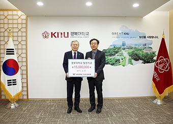 윤태경 바로본병원 이사장이 지난 27일 김상동 경북대 총장을 방문해 발전기금 1500만원을 전달했다. 전달된 발전기금은 '정형외과학교실기금'으로 적립돼 경북대 의학전문대학원 정형외과학교실의 발전을 위해 사용될 예정이다. 유은상 기자