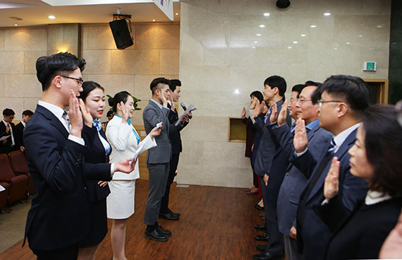 계명문화대가 지난 달 29일 쉐턱관 벽오실에서 호텔항공외식관광학부 교수 및 재학생 300여명이 참여한 가운데 '글로벌 서비스리더 선포식'을 개최했다. 학생들이 세계일류 항공사나 호텔 등에 취업하는데 자부심과 자신감을 갖도록 대학이 처음 마련한 것이다. 선포식은 졸업생들의 축하메세지를 시작으로 1, 2학년 대표 및 에티켓 리더 1기 30명에게 임명장 수여, '명품 서비스리더가 되기 위해 항상 웃으며 친절하게 대할 것' 등에 관한 서비스리더 선서 및 서비스타이 전달식, 단정한 캐쥬얼 제안전 등으로 진행됐으며, '드림, 패션, 도전'이라는 학부구호 합창으로 마무리됐다. 이원갑 학부장(호텔항공외식관광학부)은 "단순히 친절한 마인드만 가지고는 사회의 프로로 성장할 수 없다"며, "이 선포식을 통해 학생들이 서비스인으로서 자부심과 자신감을 갖고 대학생활, 사회생활 더 나아가 세계적인 직업전문인으로서 당당하게 전진해 나아갈 수 있는 기회의 시간이 됐기를 기대한다"고 말했다. 한편, 계명문화대학교 호텔항공외식관광학부는 1973년 개설돼 지금까지 관광 및 사회 각 분야에 필요한 전문직업인 8천여 명을 배출했다. 대기업 및 해외취업을 위한 특설반 운영을 통해 1:1 학생집중 관리는 물론, 400여개가 넘는 산업체들과의 파트너십으로 학생들이 졸업 후 바로 현장에서 일을 할 수 있도록 관광 산업체에 맞는 NCS 교육을 하고 있다. 2015년에는 대구·경북지역 관광계열분야 취업률 1위(2015년)를 달성했다. 유은상 기자