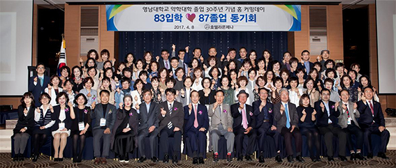 영남대 동문들의 모교사랑 발전기금 기탁 릴레이가 이어지고 있다. 최근 영남대 건축학부 동문들이 후배와 모교를 위해 장학금과 발전기금을 기탁한데 이어, 약학대학 동문들이 후배들을 위해 장학기금 5000만원을 쾌척했다. '영남대 약대 83입학·87졸업 동기회'가 지난 8일 호텔라온제나(수성구 범어동)에 모여 약학대학 졸업 30주년을 기념하는 홈커밍데이 행사 및 사은회를 가졌다. 이날 행사는 동문 7명으로 구성된 준비위원회를 비롯해 86명의 동기들이 뜻을 모아 이뤄졌다. 이 행사에서 모교 후배들을 위해 십시일반 모은 장학기금 5000만원을 전달했다. 이번 행사 준비위원장을 맡은 하난향 동문은 "모교의 발전과 후배들이 공부하는데 조금이나마 보탬이 되고자 늦게나마 동문들이 뜻을 모았다"며 "앞으로도 모교에 대한 무한한 관심과 사랑을 갖고 지속적으로 후원을 하겠다"고 말했다. 이에 정병선 영남대 약학대학장은 "83입학·87졸업 동기회를 비롯해 영남대 약대 동문들의 단합과 모교사랑에 학교 구성원을 대표해 머리 숙여 감사드린다"며 "우리 대학의 숙원사업인 약대 건물 신축과 관련해서도 지속적으로 관심을 가져주실 것을 부탁드린다"고 말했다. 이번 행사에는 은사인 김종윤(84), 도재철(82), 허근(79), 정시련(75), 이종달(72) 교수 등 영남대 명예교수 5인과 현직 약대 교수들이 참석해 지난 30년을 회고하고 사제지간의 정을 나누는 시간을 가졌다. 또 행사 다음날인 9일에는 동기회 회원들이 모교를 방문해 30년전 수학했던 교정에서 세월의 향수를 느끼며 추억을 나누기도 했다. 한편 지난해에도 영남대 약학대학 '72학번 동기회'가 졸업 40주년 기념으로 1억원, '82입학·86졸업 동기회'가 졸업 30주년 기념으로 3000만원의 발전기금을 기탁하는 등 약대 동문들의 모교사랑 발전기금 기탁이 2014년부터 계속되고 있다. 지난해 10월에는 정철자 동문(60학번), 박정관 동문(75학번)이 각각 1억원 씩을 기탁했으며 2014년에도 박재돈 ㈜한국파마 회장(55학번)이 10억원, 이수근 약대 총동창회장(67학번)을 비롯한 동창회 임원들이 1억5000만원을 기탁했다. 박영희 동문(74학번)도 졸업한지 40년만에 모교를 찾아 3000만 원의 장학금을 기탁해 화제가 되기도 했다. 최근에는 지난 3월 장준식(65학번) 동문이 5000만원을 기탁했다. 또 영남대 약대 교수들도 매월 월급에서 일정금액을 십시일반 모아 5억여원의 발전기금을 모으는 등 최근 2년 동안 영남대 약대 동문들과 교수들이 발전기금으로 기탁 및 약정한 금액은 30억원에 달한다. 황의중 기자
