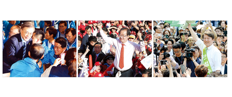 대선이 일주일 앞으로 다가오면서 각 후보들의 상대 후보진영에 대한 비방도 격화되고 있다.  문재인 더불어민주당 대선 후보는 1일 노동절을 맞아 안철수 국민의당 대선 후보와 홍준표 자유한국당 후보를 싸잡아 비판했다. 문 후보는 이날 오후 서울 여의도 한국노총에서 열린 세계노동절 기념식 및 '대선승리-노동존중 정책연대 협약' 체결식에 참석, 두 후보에 대한 공세에 나섰다. 그는 홍 후보에 대해서는 "부패 기득권 정당인 자유한국당 후보는 '강성 노조' 운운하며 자신들의 비리, 부패, 무능을 노동자에 덮어씌우고 있다"고 비난했다. 그는 "지금 우리나라 노조 조직률이 10%도 안된다. 640만 비정규직의 노조 조직률은 겨우 2.6%다"며 "이래도 강성노조냐. 이래도 강성노조 때문에 일자리가 늘지 않고, 이래도 우리 경제가 어려워졌다고 거짓말 할 수 있느냐"고도 목소리를 높였다. 문 후보는 개혁공동정부를 주장한 안 후보를 향해서는 "더 무서운 것은 부패 기득권 나라를 만든 세력과 손잡고 새 부패 기득권 나라를 꿈꾸는 사람과 세력이 있다"며 "절대 용서해서는 안된다. 노동자가 힘을 모아 심판해야 하지 않겠냐"고 공격했다. 홍준표 자유한국당 대선후보가 자신이 대통령이 되면 상왕은 서민, 태상왕은 국민이 될 것이라고 강조했다. 최근 회자되는 문재인의 상왕 이해찬, 안철수의 상왕 박지원·태상왕 김종인 전 의원을 비꼰 것이다. 홍 후보는 1일 대전 서대전 공원에서 열린 자유대한민국 수호를 위한 충청영남대첩 유세에서 "문 후보가 되면 상왕은 이해찬이다. 안철수가 되면 상왕은 박지원이다. 안철수 후보는 상왕 위에 태상왕이 있다. 태상왕은 김종인이다"면서 "홍준표가 되면 이 나라 왕은 서민들이고 태상왕은 국민들이다"고 소리 높였다. 요즘 유행하는 헬조선에 대해 홍 후보는 "젊은이들이 일이 잘 안되니까 헬조선이라 한다. 지옥 같은 대한민국이란 뜻이다"면서 "근데 저도 국회의원 돼서 세계를 돌아다녀 봐도 대한민국처럼 치안이 잘 됐고 기회가 많은 나라가 어디가도 없다"고 주장했다. 그는 그러나 "대한민국이 제일 좋은 나라다. 단지 북한의 애만 없으면 저 애만 안 까불면 대한민국은 참 살기 좋은 나라에요"라며 "역대 대통령하고는 달리 홍준표가 통 되면 북한의 애는 꽉 쥐고 삽니다. 대한민국 국민들 불안에 안 떨게 하도록 할 자신 있다"고 주장했다. 안철수 후보는 1일 오후 인천에서 유세를 펼치며 문재인 더불어민주당 대선후보에 대해 더 적극적인 공세에 나섰다. 그는 이날 신세계백화점 앞에서 열린 인천 유세에서 "문 후보가 당선되면 어떤 세상이 될지 상상해보라"며 "국민들이 반으로 나뉘어서 분열되고 사생결단하면서 5년 내내 싸울 것이다. 자기를 지지하지 않는 국민을 적폐로 돌리고 국민을 적으로 삼고, 악으로 생각하면 어떻게 통합되겠나"라고 힐난했다. 그는 "저는 정말로 절박하다. 저는 국회의원직을 사퇴했다. 모든 것을 다 던졌다"며 "왜 그러냐, 우리나라를 살리기 위함이다. 우리나라를 이대로 두면 산산조각, 갈가리 찢기는 분열된 나라가 된다. 제가 그렇게 놔둘 수 없지 않은가"라고 강조했다. 그는 "국민을 통합하는 정부를 만들겠다. 개혁공동정부를 통해 만들겠다"며 "1번, 2번 어떤 쪽을 뽑아도 국민은 분열된다. 5년 내내 편가르고 싸우고, 서로 증오하며 싸운다. 안철수가 대통령 되면 그런 일이 안 생긴다"고 통합을 강조했다. 안 후보는 또 "제가 대통령에 당선되면 이 취업비리, 입시비리, 병역비리, 이 3대 비리, 청년 꿈을 빼앗는 비리들을 완전히 뿌리뽑겠다"며 "이런 비리에 연루된 사람은 절대로 다음 정부에서 쓰지 않겠다"고 공언했다. 정치부