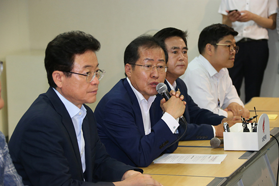 자유한국당은 17일 11시 20분 당사 2층 강당에서 신임 주요 당직자회의를 가졌다. 이날 홍준표 대표는 "이제 당이 전당대회 이후에 새롭게 세팅 되었다"며 "각 위원회별로 우리가 새로 해야 할 일이 있기 때문에 빨리 업무 파악해서 대처해주시기 바란다"고 주문했다. 홍 대표는 청와대 민정실에서 발견된 캐비닛 문건과 관련해 "청와대 문건 문제는 그것을 법정에 제출해 본들 증거능력이 없을 것이다"고 지적했다. 그러면서 "작성의 주최도 불분명하고 그것을 어떻게 증거로 삼을 수 있겠는가"고 반문하고 "오죽 답답하면 증거능력 없는 서류라도 제출해서 재판에 영향을 미치려고 하고 있는데, 정국운영 하는 것이 답답하다"고 성토했다. 김태흠 최고위원은 "대한민국은 분명한 법치국가이다. 법치국가의 원칙은 절차와 과정의 정당성에 있다. 청와대의 문건 공개는 법치국가의 기본을 무시하는 정략적 의도가 있다는 의구심을 지울 수가 없다"며 "문건을 먼저 공개하고, 특검에 사본을 전달한 것은 대통령기록물법 위반이다"고 강조했다. 이어 "국민들 사이에서는 재판중인 삼성 이재용 부회장의 뇌물공여관련 유죄를 입증할만한 결정적 증거가 확보되지 못하자 박근혜 전 대통령 재판에 영향을 미칠 의도로 문건을 공개했다는 의혹을 사고 있다"고 주장했다. 또 "문재인 정권이 집권 초기부터 절차와 과정을 무시하고 국민을 속이며 자신들의 목적을 위해 초법적 행태로 국정운영을 계속한다면 정권이 불행으로 이어질 것이다"며 " 이렇게 입맛대로, 내 멋대로 국정을 운영한다면 문재인 정권은 국민들로부터 외면 받고 실패한 정권으로 전락할 것임을 다시 한 번 경고한다"고 덧붙였다. 한편, 이날 "홍준표 대표는 문재인 대통령과 여야 5당 대표회담에 참석하지 않겠다"는 뜻을 분명히 했다. 이에 강효상 대변인은 브리핑을 통해 "지난 2011년 한미 FTA 국회비준 당시 민주당이 강하게 반대했다"면서 "(문재인 대통령이) 한미 FTA를 슬쩍 넘어가려는 이런 들러리에는 참석하지 않는다고 말했다"고 전했다.