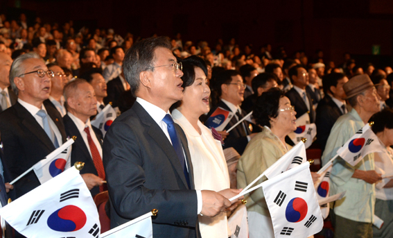문재인 대통령은 15일 "북핵문제 해결은 핵 동결로부터 시작돼야 한다"고 말했다. 문 대통령은 이날 오전 세종문화회관에서 열린 제72주년 광복절 경축식 축사에서 "적어도 북한이 추가적인 핵과 미사일 도발을 중단해야 대화의 여건이 갖춰질 수 있다"며 이같이 말했다. 문 대통령은 "북한에 대한 강도 높은 제재와 압박의 목적도 북한을 대화로 이끌어내기 위한 것이지 군사적 긴장을 높이기 위한 것이 아니다"라며 "이 점에서도 우리와 미국 정부의 입장이 다르지 않다"고 말했다. 문 대통령은 그러면서 "북한 당국에 촉구한다. 국제적인 협력과 상생 없이 경제발전을 이루는 것은 불가능하다"며 "이대로 간다면 북한에게는 국제적 고립과 어두운 미래가 있을 뿐"이라고 대화의 장으로 나올 것을 촉구했다. 문 대통령은 "우리 역시 원하지 않더라도 북한에 대한 제재와 압박을 더욱 높여나가지 않을 수 없다"며 "즉각 도발을 중단하고 대화의 장으로 나와 핵 없이도 북한의 안보를 걱정하지 않을 수 있는 상황을 만들어야 한다"고 강조했다. 문 대통령은 이어 "우리가 돕고 만들어 가겠다"며 "미국과 주변 국가들도 도울 것"이라고 덧붙였다. 문 대통령은 "다시 한 번 천명한다. 우리는 북한의 붕괴를 원하지 않는다"며 "흡수통일을 추진하지도 않을 것이고 인위적 통일을 추구하지도 않을 것"이라고 말했다. 문 대통령은 이어 "통일은 민족공동체의 모든 구성원들이 합의하는 '평화적, 민주적' 방식으로 이루어져야 한다"고 덧붙였다. 문 대통령은 또 "북한이 기존의 남북합의의 상호이행을 약속한다면, 우리는 정부가 바뀌어도 대북정책이 달라지지 않도록, 국회의 의결을 거쳐 그 합의를 제도화할 것"이라고 말했다. 문 대통령은 아울러 "저는 오래전부터 '한반도 신경제지도' 구상을 밝힌 바 있다. 남북간의 경제협력과 동북아 경제협력은 남북공동의 번영을 가져오고, 군사적 대립을 완화시킬 것"이라며 "경제협력의 과정에서 북한은 핵무기를 갖지 않아도 자신들의 안보가 보장된다는 사실을 자연스럽게 깨닫게 될 것"이라고 말했다. 문 대통령은 또 "쉬운 일부터 시작할 것을 다시 한 번 북한에 제안한다. 이산가족 문제와 같은 인도적 협력을 하루빨리 재개해야 한다"며 "이산가족 상봉과 고향 방문, 성묘에 대한 조속한 호응을 촉구한다"고 밝혔다. 문 대통령은 "다가오는 평창 동계올림픽도 남북이 평화의 길로 한 걸음 나아갈 수 있는 좋은 기회"라며 "평창올림픽을 평화올림픽으로 만들어야 한다. 남북대화의 기회로 삼고, 한반도 평화의 기틀을 마련해야 한다"고 말했다.