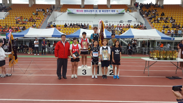 [경북신문=장성재 기자] 제24회 경주시장기 초·중육상경기대회가 지난 15일 경주시민운동장에서 열렸다.이날 대회에는 초등 34개교, 중등 20개교 1100여 명의 선수와 학부모, 교직원들이 참가했다. 역대 대회 중 가장 많은 선수들이 참가한 이번 대회는 2017년 경북학생체육대회 선발전을 겸해서 진행됐다. 대회에 참석한 구종모 경주교육지원청 교육장은 경기에 앞서 선수들과 교직원들에게 “스포츠 활동을 통해 스포츠맨십을 함양하고 꿈과 끼, 남눔과 배려가 있는 행복 경주교육을 만드는 계기가 되기를 바란다“고 말했다.대회는 학교의 규모와 남·여를 고려해 초등 2개부, 중등 3개부로 나누어 열렸다.종합성적은 초등 1부 경주초등학교, 초등 2부 강동초등학교, 남·녀 중학부는 계림중학교, 읍면 중학부는 불국중학교가 우승해 우승기와 상금 및 트로피를 수상했다. 경주시장기 육상경기대회를 통해 선발된 육상 꿈나무 선수들은 매년 개최되는 전국소년체육대회에서 좋은 성과를 거두고 있다.