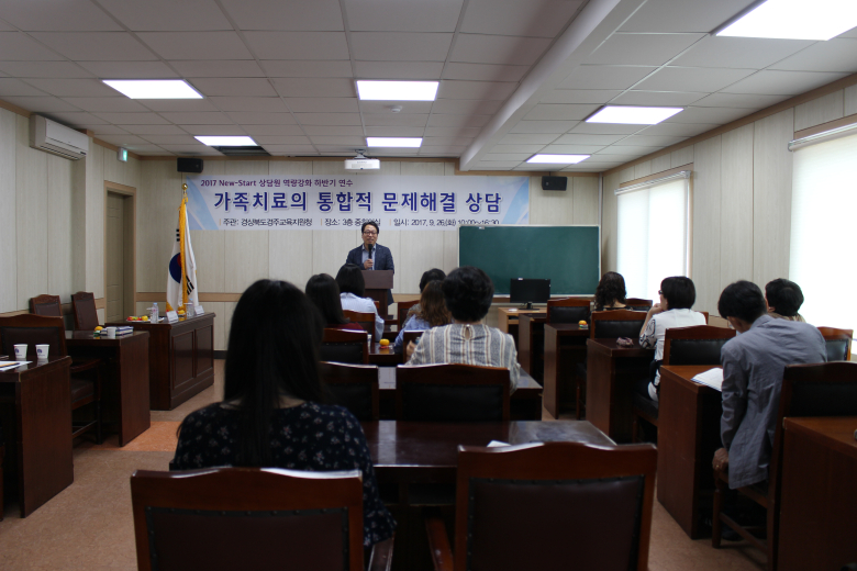 [경북신문=장성재 기자] 경주교육지원청 Wee센터(센터장 김현동)는 지난 26일 회의실에서 New-Start 상담원 및 Wee센터 관계자 25명을 대상으로 '가족치료의 통합적 문제해결 상담을 위한 연수'를 진행했다고 밝혔다. New-Start 프로그램은 경북도교육청의 학업중단숙려제도를 말하는 것으로, 무단결석, 자퇴 등 학업중단 위기에 놓인 학생들이 있는 곳에 New-Start 상담원이 직접 찾아가서 상담과 체험활동을 지원해 학교적응력을 향상시켜 학교복귀를 돕고자 운영되고 있는 경주Wee센터 사업이다. New-Start 프로그램은 일 년에 2번 의뢰가 가능하며, 1회 이상 부모상담을 지원하고 있다. 이번 연수는 학생들이 학교에 복귀하기 위해서는 학생 개인의 변화뿐만 아니라 가족의 지원과 변화가 필요하다는 학교 내외의 요구에 의해서 기획됐다.김천대학교 상담심리학과 박성주 교수를 강사로 초빙해 통합적 문제해결 상담의 개념과 통합적 문제해결 상담으로 진행한 가족치료를 실제 사례를 중심으로 진행했다. 연수를 참관한 김현동 Wee센터장은 “학생들의 학업중단은 가족해체의 한 단면일 수 있다. New-Start프로그램이 학생들에게 학업에 대해 다시 생각할 기회를 주는 것과 동시에, 부모와 자녀 간의 관계를 회복하는 기회가 되기를 바란다. 그만큼 이 연수가 New-Start 상담원들에게 도움이 되기를 바라며, 앞으로도 청소년들의 지원에 힘써 도와주기를 바란다”고 강조했다.