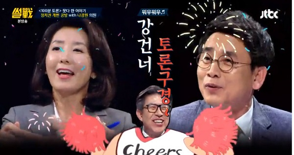 ‘썰전’에서 나경원 의원과 유시민 작가이 또다시 열띤 논쟁을 펼쳤다. 앞서 두 사람은 MBC ‘100분토론’에서 개헌 관련해 맞붙으며 화제가 된 바 있다. 이번엔 댓글조작 혐의로 구속돼 경찰의 수사를 받고 있는 ‘드루킹’에 대한 이야기로 날선 공방을 펼쳤다. 나경원 의원과 유시민 작가는 지난 19일 방송된 JTBC ‘썰전’에 출연해 화려한 입담을 자랑했다. 이날 방송에서는 ‘드루킹 사건’에 대해 다루었다.이날 나 의원이 ‘드루킹 댓글조작 사건’을 두고 엄청난 게이트라고 입을 뗐다. 그러자 유 작가는 말없이 미소만 보였다.
