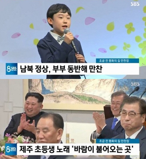 11살 제주소년 오연준 군이 국민들에게 감동을 선사했다. 또한 오 군은 김정은 위원장과 리설주 여사의 미소를 끌어냈다.오연준 군은 지난 27일 남북 정상회담 환영 만찬에서 故 김광석의 ‘바람이 불어오는 곳’을 불러 많은 이들에게 감동을 안겼다.특히 김정은 위원장과 부인 리설주 여사는 오연준 ‘바람이 불어오는 곳’을 경청하며 얼굴에 미소를 가득 띠어 눈길을 끌었다.오연준은 앞서 엠넷 위키드(We Kid)에 출연해 어린이의 노래라고 믿기 힘들 정도의 노래실력과 목소리로 세상을 깜짝 놀라게 했다. 당시 방송에서 부른 ‘바람의 빛깔’ 영상은 2016년 한국인이 가장 많이 본 영상에 랭크되기도 했다.한편 네티즌들은 오연준 군 무대에 “꼭 껴안아 주고 싶은 예쁜 아가. 오래오래 지금처럼 노래하렴” “정말 목소리가 아름답네. 제발 성장이 지나도 아름다운 목소리가 남아있기를” “천사가 노래를 부르면 연준이와 같은 목소리로 할 것 같아요! 연준 군 수고했어요” “청아한 목소리에 눈물이 흐를 정도로 감동 또 감동이네요” “고마워요, 연준군! 오늘 넘나 자랑스러웠어요.” 등의 의견을 드러냈다.