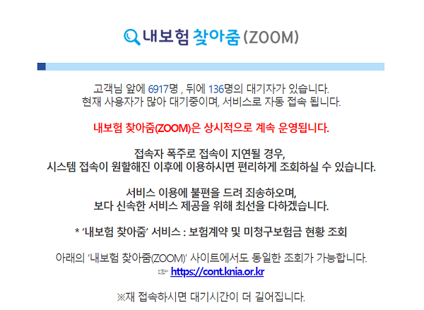 내보험 찾아줌이 1일 인터넷 상 이슈가 되는 가운데 해당 사이트가 접속이 되지 않고 있어 누리꾼들의 불만이 크다.1일 오후 포털사이트 상 '내보험 찾아줌'이 검색어에 오른 후 홈페이지에 접속하면 ‘사이트에 연결할 수 없음’이라는 오류 메시지가 뜬 것.앞서도 내보험 찾아줌이 온라인상 폭발적인 관심을 보일 당시 관계자는 “아예 안 되는 게 아니라 소화 가능한 물량을 계속 소화하고 있다”며 "현재 서버 용량으로는 해결이 안 되는데, 당장 증설도 어렵다“고 말한 바 있다.누리꾼들은 “언제까지 이런 불편을 겪어야 하나” “뭔 사이트가 실검에만 뜨면 접속이 안 되냐”며 불만 섞인 목소리를 냈다.