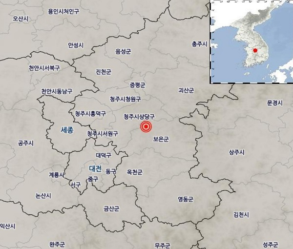 청주 지진 소식에 전해져 누리꾼들이 깜짝 놀랐다.2일 기상청 발표에 따르면 낮 12시 34분 36초에 규모 2.5의 지진이 발생했다. 발생위치는 충북 보은군 북서쪽 11km 지역으로 발생 깊이는 11 km이다. 기상청은 이번 지진으로 피해는 없을 것으로 내다봤다.네티즌들은 SNS를 통해 “보은 지진 났는데 우리 지역까지 흔들렸다” “헐 대박 밥 먹는데 땅 흔들려서 큰 차 지나가는 건가 했는데 지진이었구나” “어쩐지 땅 흔들리는 느낌 나더라” “이번 지진 진원지 보은쪽이었나. 완전 내륙 한복판이잖아” “대박 집 무너지는 줄 ㅠ 2.5인데도 후덜덜” 등의 글을 올리고 있다.