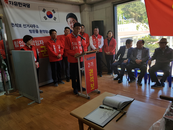권석보 자유한국당 2-가 울진군의원 예비후보자 선거사무소 개소식이 지난 19일 오후 1시 죽변 중앙로 3층에서 지지자와 당원,등 200명이 찾아와 권 후보의 개소식을 가졌다. 이날 자유한국당 강석호 국회정보위원장과 군수, 도의원,군의원 예비후보자,등 사회단체장들도 참석해 권 후보에게 힘을 실어 주었다. 권석보 후보자측은 "이날 분위기를 이어 나가 지지세를 확장시키겠다"며 총력전의 각오를 다졌다.  박호환 기자