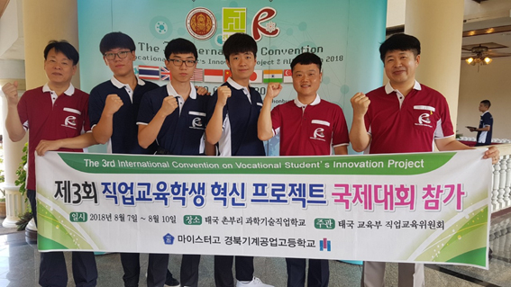 경북기계공업고등학교가 지난 7일부터 10일까지 태국 파타야에서 열린 '제3회 태국 직업교육학생 혁신 프로젝트 국제대회'에 참가해 우수상을 수상했다.