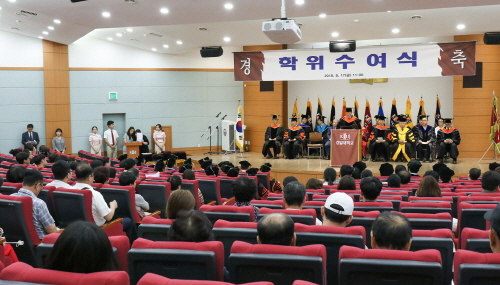 경일대학교는 지난 17일 도서관 강당에서 '2017학년도 후기 학위수여식'을 거행했다고 밝혔다.이날 학위수여식은 정현태 총장을 비롯해 이한수 총동창회장, 보직교수, 학부모와 축하객 등 500여 명이 참석했다.