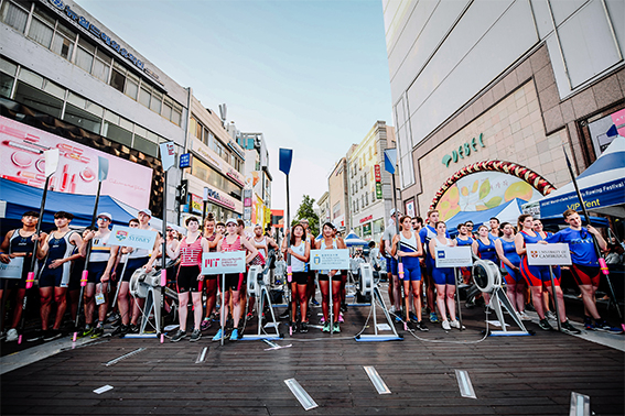 개막식에 이어 열린 길거리 조정대회에서는 로잉머신을 이용한 500m 남, 여 개인전과 대학 대항 1000m 남, 여 4인승 릴레이 경기가 펼쳐져 각 대학을 대표하는 학생들이 기량을 겨뤘다.