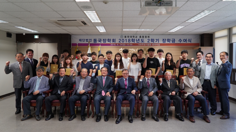 동국대학교 총동창회는 지난 24일 동국대 경주캠퍼스 백주년기념관 중회의실에서 2018학년도 2학기 동국장학회 장학금 전달식을 가졌다.