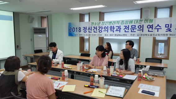 울진교육지원청(교육장 김경일) Wee센터는 최근 대구 영남Wee센터 회의실에서 울진Wee센터 전문상담인력을 대상으로 2018 정신건강의학과 전문의 연수및 자문을 실시했다.