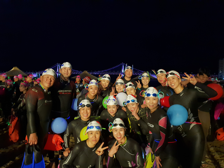 달성군시설관리공단 달성문화센터 수영회원들이 지난 1일과 2일 부산에서 열린 '2018년 광안리 달빛수영대회'라는 이색수영대회에 참가했다.