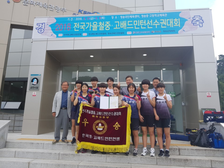 청송여고는 6일 경상북도 청송군 청송국민체육센터에서 열린 2018 전국가을철중고배드민턴선수권대회 여자고등부 단체전 결승에서 장곡고등학교를 3-0으로 꺾고 정상에 올랐다.