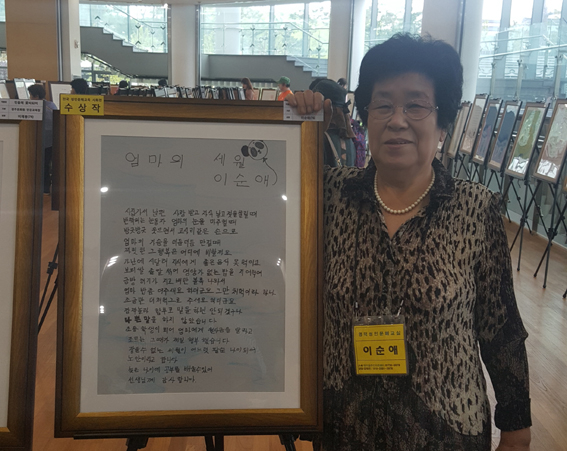 이순애(여·80·사진) 어르신의 작품 '엄마의 세월'이 9월 12일 서울시 세종문화회관에서 열리는 전국성인문해교육 시화전에서 우수상에 선정됐다. 또한 지난 7일 경북도청에서 열린 2018년 경북도 문해대잔치에서 김일리(여·82) 어르신이 시화전 부문에서 입선을 했다.