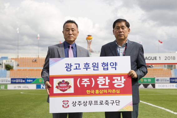 상주상무와 광고 후원 협약을 맺은 주식회사 한광은 물 맑고 공기 좋은 인삼의 고장 금산에서 질 좋은 인삼을 엄선하여 GMP시설이 갖추어진 회사에서 홍삼, 흑삼 제품을 생산하고 있다. 한광의 브랜드인 '한금홍'은 한국·금산·홍삼이란 뜻으로 한국 홍삼에 대한 자부심을 담고 있다. 한광은 홍삼 수출 전문기업으로써 중국을 비롯하여 태국 등 해외에 수출하고 있다.