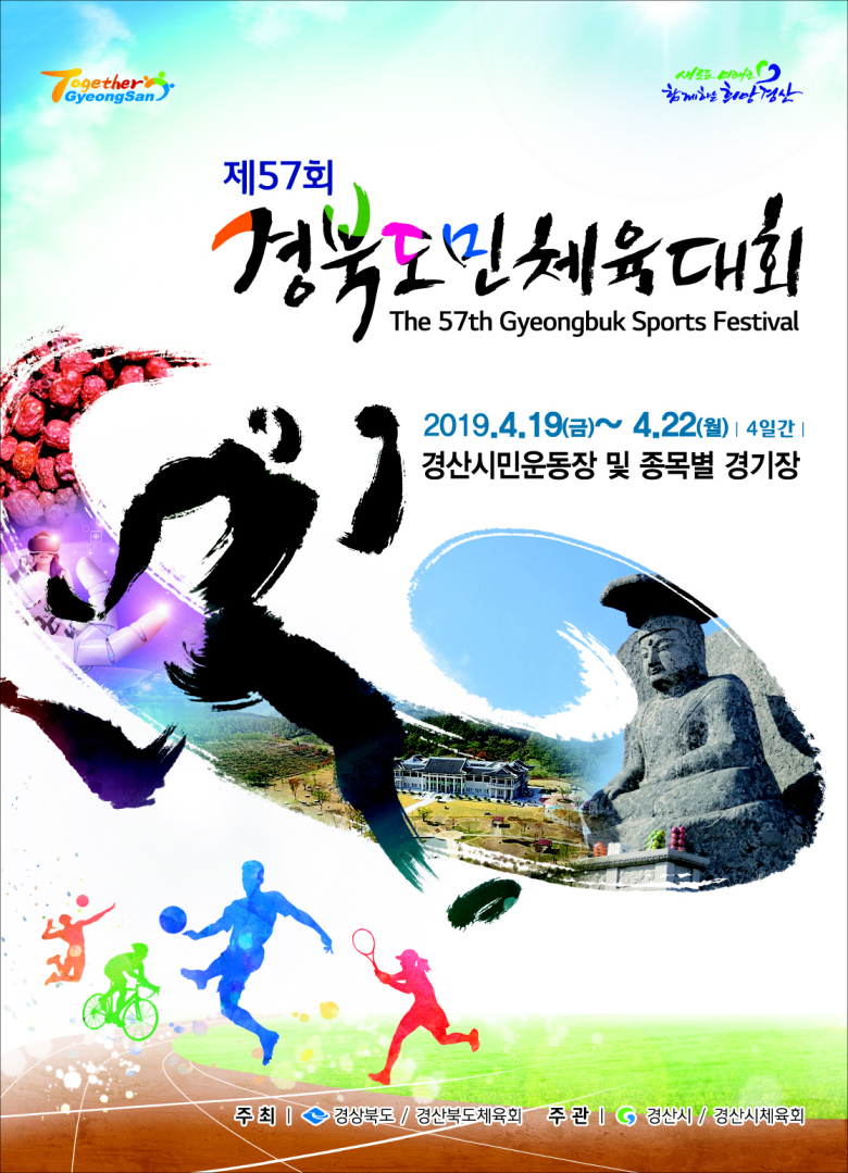 경산시에서 2019년도 개최되는 ‘제57회 경북도민체육대회’의 개최기간이 4월19일부터 4월22일까지로 최종 확정됐다. 시는 체계적이고 차질 없는 대회준비를 위해 지난 1월 도민체전 전담 T/F팀을 구성해 제1차 준비상황보고회를 개최했으며, 시민운동장 관람석 증축 및 전광판 교체, 종목별 경기시설 개보수 등 대회 준비에 총력을 기울이고 있다 아울러, 도민체전 상징물 5종(대회마크, 마스코트, 포스터, 구호, 표어)을 내부적으로 확정짓고 경북도민이 한데 어우러진 '소통과 화합'의 축제로 치러낼 수 있도록 VR체험관, 상설공연장 운영 등 다양한 프로그램을 철저히 준비해 '도민 대화합'의 중심도시로 우뚝 서겠다고 밝혔다. 최영조 경산시장은 “앞으로 확정된 도민체전 개최일정에 맞춰 차질 없이 대회를 준비하고 시 공무원과 체육회 그리고 시민 모두의 역량을 하나로 결집해 이번 체전을 역대 어느 대회보다 내실 있고 성공적으로 개최할 수 있도록 최선을 다해 줄 것”을 당부했다.