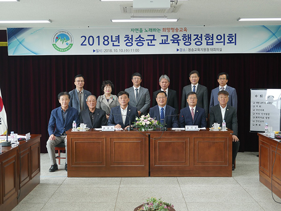 경상북도청송교육지원청(교육장 김기한)과 청송군(군수 윤경희)은 10일 오전 10시 30분 청송교육지원청 3층 대회의실에서 ‘2018년 청송군 교육행정협의회’를 개최했다.이번 ‘청송군 교육행정협의회’는 공동의장인 김기한 교육장과 윤경희 군수,심종택회장,윤동탁,심상휴의원,김대흥 청송여고교장,이재일 진보고교장,권여숙회장,임경성 대구일보부국장을 비롯한 위원들이 참석해 교육부문 상호협력과 청송교육 발전 방안에 대한 협의했다.김기한 교육장은 교육부문에 있어서 지자체 보조금 확보의 필요성과 지속적인 지원을 요청했으며,윤경희 군수는 교육경비보조금의 법적,재정적 제약이 있는 건 사실이나 가능한 모든 방법을 강구하여 우리 지역 학생들 교육을 위해 최대한 지원해 줄 것을 약속했다. 김대흥 청송여고 교장은 지역내 청송초,청송여중고, 학교 배드민턴부의 코치선생님의 부족으로인한 애로사항을 토로했다. 김기한 교육장은 지역의 발전과 학생들의 미래를 위해 앞으로도 교육부문 상호협력과 공동참여를 통하여 지역 교육 발전 방안을 함께 협의하고, 위원들 모두 청송교육 발전을 위하여 최대한 협력해 줄 것을 당부했다.