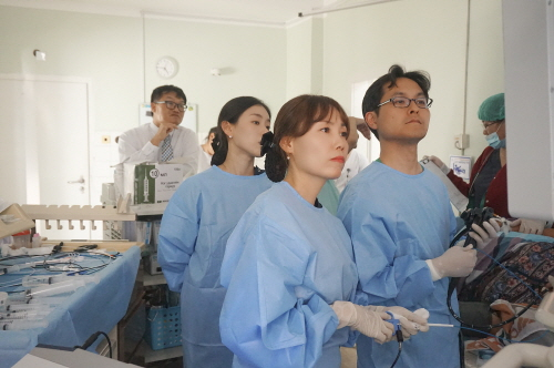 경북대병원 소화기내과팀이 16일 몽골 국립 제1병원에서 열린 내시경 공동학회에서 선진 내시경시술을 선보였다. 몽골 국립 제1병원 주최로 열린 이날 학회는 몽골 21개 지역에서 70여명의 의료진이 참가했다.
