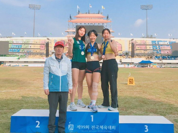 2학년 문하은 학생은 장대높이뛰기 경기에서 3m30을 훌쩍 뛰어 넘어 개인 최고기록이자 2위 임찬혜(경기체고)와 30cm나 차이를 내며 금메달을 획득했다.