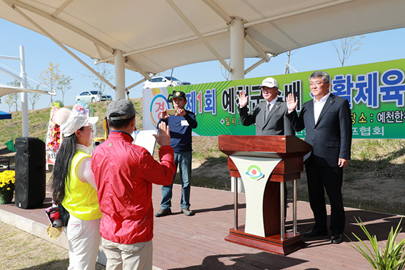 「제1회 예천군수배 생활체육파크골프대회」가 10월 24일 오전 9시부터 한천파크골프장에서 성대히 개최됐다.예천군파크골프협회(회장 권영석)에서 주관한 이번 대회에는 김학동 예천군수를 비롯하여 내빈 및 동호회원 등 200여 명이 참가해 성황을 이뤘다.파크골프를 통해 회원 상호간 화합과 체력증진을 도모하고 건전한 국민생활체육으로 널리 보급하고자 개최된 이번 대회는 첫 대회로써 파크골프 동호인들은 물론 예천군민들에게 많은 관심을 받아왔다.김학동 예천군수는 격려사를 통해 “제1회 예천군수배 생활체육파크골프대회를 올해 첫 개최하게 되어 매우 기쁘게 생각하며, 이번 대회를 통해 파크골프가 활성화되어 회원 상호간 친목과 우애를 다지고 삶의 활력소를 찾는 계기가 되기를 바란다.”고 소감을 밝혔다.한편, 파크골프는 나무로 된 채를 이용해 나무로 만든 공을 쳐서 잔디 위의 홀에 넣는 경기로 공원에서 치는 골프놀이라 할 수 있으며, 일반 골프보다 비교적 안전하고 쉽게 즐길 수 있어 대중들 사이에 널리 확산되는 추세이다.