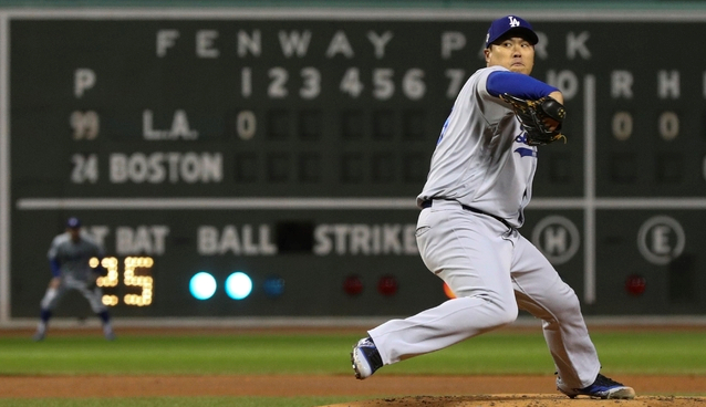 '코리안 몬스터' 류현진(31·LA 다저스)이 월드시리즈(WS) 첫 등판에서 패전의 멍에를 썼다. 류현진은 25일(한국시간) 미국 메사추세츠주 보스턴의 펜웨이파크에서 열린 2018 메이저리그(MLB) 월드시리즈(7전 4선승제) 2차전 보스턴 레드삭스와의 경기에 선발등판, 4⅔이닝 6피안타 1볼넷 5탈삼진 4실점 피칭으로 패전투수가 됐다. 한국인으로는 최초로 메이저리그 선발 마운드에 오른 류현진은 중압감을 떨쳐내고 자신의 가진 역량을 모두 발휘했다. 93마일(150㎞)에 이르는 포심패스트볼, 투심패스트볼과 함께 커브, 체인지업, 슬라이더를 앞세워 보스턴 타선을 효과적으로 봉쇄했다. 커브 등 변화구로 타자의 타이밍을 뺏는 장면이 인상적이었다. 그러나 5회 급격하게 흔들리면서 2사 만루 위기에서 강판됐다. 후속 투수 라이언 매드슨이 류현진이 남겨둔 승계주자를 모두 홈으로 불러들이면서 류현진은 패전투수가 됐다.  출발은 좋았다. 1회말 직구와 컷패스트볼, 커브 조합으로 범타를 유도했다. 선두타자 무키 베츠를 2구 만에 유격수 땅볼로 처리한 류현진은 다음타자 앤드루 베닌텐디를 낮게 떨어지는 커브로 헛스윙 삼진을 잡아냈다. 이후 스티브 피어스를 1루수 뜬공으로 잡아냈다.그러나 0-0으로 맞선 2회 실점을 기록했다. 류현진은 1사 후 잰더 보카츠에게 그린 몬스터를 맞는 2루타를 허용했다. 이어 라파엘 디버스를 삼진으로 처리해 위기를 넘기는 듯 했지만, 이언 킨슬러에게 1타점 좌전안타를 맞았다. 곧바로 재키 브래들리에게도 안타를 맞았지만, 3루까지 뛰던 킨슬러를 잡아내 이닝을 종료했다.3회부터는 호투가 이어졌다. 3회 1사 배츠에게 안타를 허용한 류현진은 베닌텐디와 피어스를 모두 범타로 잡아냈다. 류현진은 4회에도 삼자범퇴를 기록했다. J D 마르티네스를 유격수 땅볼로 처리한 류현진은 보가츠를 삼진으로 돌려세웠다. 풀카운트 승부에서 던진 회심의 낮은 포심패스트볼로 스탠딩 삼진을 솎아냈다. 비버스 역시 삼진으로 처리했다. 낮게 떨어지는 커브로 헛스윙을 유도했다. 3회 1사 부터 5회 2사까지 7타자 연속 범타 행진을 벌인 류현진은 이후 갑작스럽게 흔들렸다. 크리스티안 바스케스와 베츠에게 연속 안타를 맞고 2사 1, 2루 위기에 처했다. 투수 코치가 마운드에 올라 류현진을 안정시켰다. 류현진은 상대 타자 베닌텐디와 수 차례 수싸움을 벌이며 풀카운트 승부를 펼쳤다. 그러나 볼넷을 내준 후 마운드를 내려갔다. 류현진에 이어 마운드에 오른매드슨이 밀어내기 볼넷에 이어 마르티네스에게 2타점 적시타를 내줬다. 류현진의 자책점은 4점이 됐다. 다저스는 0-1로 끌려가던 4회초 무사 만루에서 맷 켐프의 희생플라이와 야시엘 푸이그의 적시타로 전세를 뒤집었다. 그러나 5회말 류현진이 흔들리면서 2-4로 역전을 허용했다.결국 다저스는 2점차를 극복하지 못하고 2-4로 패했다. 이날 다저스 타선은 3안타의 빈공에 시달렸다. 4회 이후 단 한 명의 타자도 누상에 나가지 못했다.1, 2차전을 모두 패한 다저스는 27일 오전 9시 홈구장인 다저스타디움에서 3차전을 치른다.   뉴시스