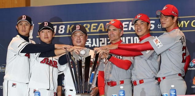 두산과 SK는 4일부터 7전4선승제의 한국시리즈에서 맞붙는다. 두산과 SK가 한국시리즈에서 맞붙는 것은 2008년 이후 10년 만이다. 포스트시즌 맞대결도 2009년 플레이오프 이후 9년 만이다. 두 팀이 라이벌로 거론됐을 당시는 SK에 아름다운 추억이지만, 두산에는 아픈 기억이다. 2007년 정규시즌 1위를 차지한 SK는 플레이오프에서 3연승을 거둔 두산과 한국시리즈에서 만났다. 두산이 먼저 2승을 거뒀으나 SK는 3~6차전을 모두 승리로 장식하고 한국시리즈 우승을 맛봤다. 한국시리즈에서 2패 뒤 4연승으로 우승한 것은 2007년 SK가 최초였다. SK는 2008년에도 정규리그 1위로 한국시리즈에 나섰다. 정규리그 2위였던 두산은 당시 7전4선승제로 치러진 플레이오프에서 삼성 라이온즈를 4승 2패로 꺾고 한국시리즈 무대를 밟았다. 두산은 1차전 승리로 상승세를 이어갔으나 SK는 2~5차전을 내리 이겨 2년 연속 한국시리즈를 제패했다. 두산과 SK의 포스트시즌 맞대결은 2009년에는 플레이오프에서 성사됐다. SK는 정규시즌 2위로 플레이오프에 직행했고, 3위였던 두산은 롯데 자이언츠를 3승 1패로 꺾고 플레이오프에 나섰다. 두산이 1, 2차전을 내리 이겼지만, SK는 이후 3경기를 모두 승리로 장식해 '리버스 스윕'을 달성했다. 당시 5차전에서 두산이 선취점을 뽑은 상황에 경기가 비로 노게임 선언됐고, 다음 날 열린 5차전에서 SK가 승리를 가져갔다.물론 당시와는 입장이 달라졌다. 이번에는 두산이 정규리그 1위에 올라 한국시리즈에 직행했다. SK는 플레이오프에서 넥센 히어로즈와 5차전까지 가는 혈전 끝에 한국시리즈행 티켓을 따냈다. 3일 서울 강남구 코엑스에서 열린 2018 신한은행 마이카 KBO 한국시리즈 미디어데이에서는 '옛 기억'을 두고 설전이 오갔다. 이날 미디어데이에 참석한 김태형 두산 감독은 당시 두산 코치였다. 2007년 입단한 이용찬은 2008년 한국시리즈, 2009년 플레이오프에서 마운드에 올랐다. 2009년 두산에서 프로 생활을 시작한 정수빈은 그해 플레이오프에 나섰다.SK 대표 선수로 나선 외야수 김강민과 좌완 에이스 김광현은 왕조 시절 주축이었다. 김광현은 신인이던 2007년 한국시리즈 4차전에서 기대 이상의 쾌투를 선보여 시리즈 흐름을 뒤바꾸는데 결정적인 역할을 하기도 했다. 김강민과 김광현 모두 좋은 기억만을 떠올리려 했다. 김강민은 "그 때에는 우리가 기다리고 있었고, 지금과 입장이 다르다. 지금은 불리한 입장"이라면서도 "하지만 좋은 기억을 남겨두려 한다. 두산과 포스트시즌을 했을 때 결과가 좋았다. 불리한 입장은 극복할 수 있을 것"이라며 자신감을 보였다.김광현도 "그 때 막내여서 아무것도 모르는 상태에서 포수 미트만 보고 공을 던졌다. 긴장을 하나도 하지 않았다. 하지만 지금은 후배들을 이끌어야 하는 상황"이라고 설명했다. 그러면서도 "두산이랑 포스트시즌을 하면 좋았잖아요"라며 "좋은 기억을 가지고 경기를 할 생각"이라고 각오를 다졌다. 반면 두산은 1위 팀의 자신감을 드러내며 그때와 지금은 엄연히 다르다고 맞받아쳤다.김태형 감독은 "당시 배터리 코치였다. SK 멤버가 워낙 좋았다. 우리가 2연승하고 4연패 해 우승을 뺏겼다. 우승을 두 번이나 뺏겨서 코치진들끼리 술 한 잔 하며 울기도 했다"고 회상했다. 하지만 이내 "그건 그거고"라더니 "지금은 우리가 1위로 한국시리즈에 왔다. 올 시즌 우리 팀을 봤을 때 투타 조합도 좋고 팀이 탄탄하다. 착실히 준비했고, 충분히 우승할 자신이 있다"고 강조했다. 이용찬은 "2008, 2009년과 지금은 다르다. 올해는 우리가 1위 팀이다. 옛 일은 생각도 하지 않는다"며 "오로지 한국시리즈 우승만 바라본다"고 굳은 의지를 내비쳤다.2009년 플레이오프에서 실책을 했던 뼈아픈 기억을 떠올린 정수빈은 "내가 실책을 하고 3연패를 당해 떨어졌던 기억이 있다. 하지만 넘어갈 기억"이라며 "내일부터 시작하는 한국시리즈에서 나쁜 기억을 없애고 좋은 기억을 남기고 싶다"고 우승 각오를 다졌다.  뉴시스
