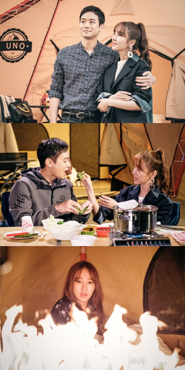천정명과 윤은혜의 위장 로맨스에 시작부터 불이 붙는다.오늘(8일) 밤 11시 4회 방송을 앞두고 있는 MBN 수목드라마 ‘설렘주의보’(제작 (유)설렘주의보)가 천정명(차우현 역)과 윤은혜(윤유정 역)의 글램핑 데이트 현장을 공개해 시선을 집중시키고 있다.어제(7일) 방송에서 차우현은 윤유정의 영화 기자간담회장에 난입해 “위장 연애, 쇼윈도 커플, 그거 나랑 하자고요”라며 그녀의 제안을 수락했다. 때문에 3개월간의 계약 연애에 첫 발을 뗄 두 사람을 향한 시청자들의 기대감이 최고조에 달해 있는 상황. 이에 부응하듯 여느 커플들과 다를 바 없는 차우현과 윤유정의 다정다감한 순간들이 포착돼 흐뭇함을 자아낸다. 서로의 어깨를 감싸고 미소를 짓고 있거나 쌈을 싸주는 두 사람은 보는 이들의 입꼬리까지 올라가게 만들고 있다.그러나 텐트 안에 홀로 남겨진 윤유정이 타오르는 불길에 휩싸이는 초 긴급 상황에 놓이게 돼 이목이 집중되고 있다. 그녀는 불 속에서 애타게 차우현을 부르짖는다고 해 심상치 않은 전개가 펼쳐질 것을 예감케 한다. 때문에 두 사람의 깜찍한 위장 연애 초장부터 불어 닥칠 거센 폭풍에 오늘(8일) 방송이 더욱 기대되고 있다. ‘설렘주의보’ 관계자는 “드디어 오늘 차우현과 윤유정의 위장 연애가 본격적으로 시작된다. 누가 봐도 연인 같은 두 사람의 설레는 데이트 현장을 기대해 주시기 바라며 거센 불길에 둘러싸여 위태로운 윤유정이 무사히 위기에서 벗어날 수 있을지 지켜봐달라”고 오늘(8일) 방송을 향한 기대감을 끌어올리고 있다.사진 제공: (유)설렘주의보