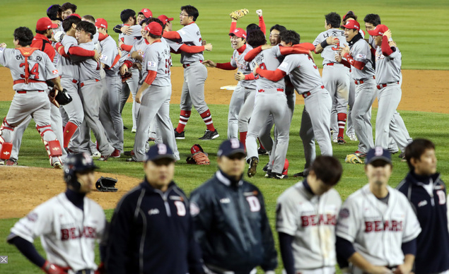 SK 와이번스가 두산 베어스를 꺾고 8년 만에 한국시리즈 우승을 거머쥐었다. SK는 12일 잠실구장에서 열린 두산과의 2018 KBO 한국시리즈(7전 4선승제) 6차전에서 5-4로 승리했다. 정규리그 2위를 차지한 SK는 넥센 히어로즈의 플레이오프를 거친 후 두산마저 제압해 통산 4번째 한국시리즈 우승컵을 차지했다.SK 2번타자 한동민은 연장 13회초 결승 솔로 홈런을 터뜨려 우승의 주역이 됐다.정규리그 1위를 차지한 두산은 통합 우승에 도전했지만, SK에 막혀 뜻을 이루지 못했다.  SK는 1회초부터 득점을 올렸다. 경기 초반 제구력이 흔들린 두산 선발 이용찬을 상대로 선두타자 김강민, 한동민, 최정이 연속 볼넷을 골라내 무사 만루 찬스를 잡았다. 이어 제이미 로맥이 유격수 앞 땅볼로 선취점을 올렸다. 그러나 후속 타선이 모두 범타로 물러나 추가 득점에 실패했다. SK는 2회부터 등판한 이영하에게 막혀 추가점을 뽑지 못했고, 두산 역시 SK 선발 메릴 켈리를 공략하지 못해 무득점에 그쳤다. 득점을 노리던 SK는 4회 강승호의 투런 홈런으로 순식간에 3-0을 만들었다. 강승호는 이영하의 한가운데로 형성된 슬라이더를 노려쳐 좌측 담장을 살짝 넘겼다.패색이 짙은 6회말 두산의 반격이 시작됐다. 허경민의 몸에 맞는 볼과 정수빈의 볼넷으로 만든 1사 1, 2루에서 최주환이 우익선상에 떨어지는 1타점 2루타를 터뜨렸다. 곧바로 양의지가 1타점 중전안타를 날려 켈리를 강판시켰다.SK는 3-3으로 맞선 8회 천금 같은 기회를 잡았다. 2사 1, 2루에서 김성현의 중전안타가 나왔고, 김재현은 3루를 돌아 두산 포수 양의지를 피해 홈을 터치했다. 심판은 세이프 판정을 내렸지만, 비디오 판독 결과 아웃으로 번복됐다. 김재현의 발 쪽에 양의지의 터치가 이뤄진 것이다. 분위기를 가져온 두산은 8회 공격에서 다시 한 번 기회를 만들었고, 양의지의 희생플라이에 힘입어 4-3으로 전세를 뒤집었다. 그러나 9회 SK에 기적이 찾아왔다. 타격 부진을 겪고 있던 최정이 2사 주자 없는 상황에서 동점 솔로 홈런을 터뜨렸다.최정은 조쉬 린드블럼의 포크볼을 공략해 좌측 담장을 넘어가는 아치를 그려냈다. 결국 승부는 연장전으로 돌입했다. 두산이 '끝내기' 기회를 잡았다. 두산은 연장 11회 2사 후 오재원과 김재호의 연속 안타로 1, 3루 기회를 만들었다. 그러나 류지혁이 2루수 땅볼로 득점 기회를 놓쳤다.위기를 넘긴 SK에 홈런포가 터져 나왔다. 주인공은 한동민이었다. 한동민은 연장 13회초 두산 9번째 투수 유희관의 시속 129㎞짜리 직구를 통타해 결승 솔로 홈런을 터뜨렸다. SK는 리드를 잡자, 13회말 에이스 김광현을 올려 1점차 승리를 지켜냈다.   뉴시스