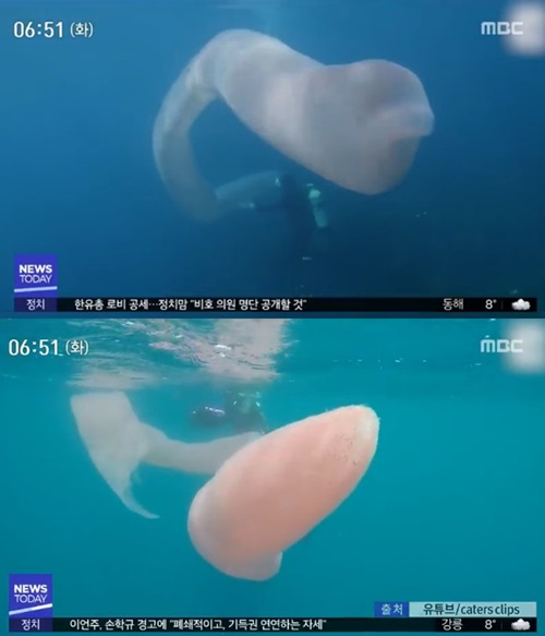 불우렁쉥이가 주요 포털 실검 상위권에 등극, 그 배경에 관심이 뜨겁다.뉴질랜드 앞바다에 '불우렁쉥이'가 나타나 다이버들에게 포착됐기 때문.불우렁쉥이란 '피로솜(Pyrosome)'을 부르는 우리말로, 주로 온난 해양의 망망대해 상층부에 사는 피낭동물의 총칭이다. 여러 마리의 작은 개충이 모여 군체를 이루어 바닷속을 떠다니는데, 작게는 10cm에서 크게는 수십 미터에 이르는 것들도 있다. 최근 뉴질랜드에서 목격됐다는 불우렁쉥이는 크기가 무려 8m에 달한다.자루 모양의 이 불우렁쉥이와 우연히 만난 다이버들은 이를 쫓아다니며 신비로운 영상을 촬영해 공개했다. 불우렁쉥이는 희귀한 생김새 때문에 종종 바다괴물로 오해를 받지만, 사람을 해치지는 않는 것으로 알려졌다. 이미지 =mbc