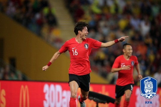 황의조(감바 오사카)가 다시 한 번 골맛을 보며 대표팀 원톱 경쟁에서 한 발 앞섰다. 황의조는 17일 호주 브리즈번 선코프 스타디움에서 열린 호주와의 축구대표팀 평가전에 주전 원톱으로 출격해 득점포를 가동했다. 파울루 벤투 감독은 4-2-3-1 포메이션의 꼭짓점을 황의조에게 맡겼다. 지난달 12일 우루과이전에서 선제골을 터뜨린 황의조에게 다시 한 번 기회를 줬다. 경기 초반 한국은 호주에게 끌려갔다. 중원을 내준 것이 화근이었다. 호주는 전방부터 강력한 압박과 미드필드에서의 빠른 패스 플레이를 앞세워 주도권을 가져갔다. 시간이 지나도 흐름은 달라지지 않았다. 호주의 기세에 한국은 속수무책으로 당했다. 슛은 물론 중앙선을 넘는 것조차 쉽지 않았다. 황의조 역시 공격보다는 상대의 공세를 차단하는데 주력해야했다. 잠잠하던 황의조는 자신에게 찾아온 한 번의 기회를 놓치지 않았다. 전반 22분 수비수 김민재(전북)가 호주의 압박을 뚫고 전방으로 긴 패스를 시도했다. 공은 수비수 키를 넘어 뒷공간을 파고들던 황의조에게 정확히 배달됐다. 골키퍼와 맞선 황의조는 반대쪽 골문을 겨냥한 오른발 슛으로 득점에 성공했다. 황의조의 A매치 세 번째 골이다. 2015년 10월13일 자메이카전에서 마수걸이 골을 터뜨린 황의조는 우루과이전에 이어 호주전에서도 믿음에 보답했다. 무엇보다 일방적으로 끌려가던 흐름에서의 득점이라 더욱 반갑다. 황의조의 골은 공격적이었던 호주 포백을 호주 골문 쪽으로 물러서게 하는 효과를 가져왔다. 스트라이커의 결정력이 경기를 좌우할 수 있다는 사실을 보여준 장면이었다. 한국이 내용에서 밀리고도 1-1로 경기를 마칠 수 있었던 것도 황의조의 득점 덕분이었다. 황의조의 올 여름 이후 행보는 가히 기록적이다. 자카르타 팔렘방 아시안게임에서는 9골로 금메달의 일등공신이 됐고, 소속팀 감바 오사카로 돌아간 뒤에도 6경기 연속골로 식지 않은 감각을 뽐냈다. ‘출전=득점’이라는 공식이 계속되자 러시아월드컵 때 황의조가 대표팀에 차출되지 못한 것에 대한 아쉬움의 목소리도 나오고 있다. 이 골로 벤투 감독의 눈도장을 제대로 찍은 황의조는 당분간 대표팀 최전방을 독점할 공산이 커졌다. 후반 황의조를 대신한 석현준(랭스)이 인상적인 움직임을 보여주지 못하면서 그의 주가는 더욱 치솟게 됐다.   뉴시스
