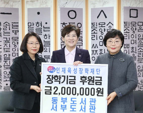 동부도서관과 서부도서관은 올해 전국 도서관 운영 평가에서 문화체육관광부장관상을 수상했다. 상금으로 받은 100만원을 소외계층 학생들을 위한 장학금으로 써 달라며 인재육성장학재단에 기탁했다.