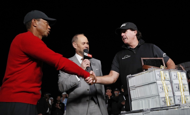필 미켈슨이 타이거 우즈(이상 미국)와의 상금 900만 달러(101억원)짜리 단판 승부에서 웃었다. 미켈슨은 24일(한국시간) 미국 네바다주 라스베이거스의 섀도 크릭 골프코스에서 열린 우즈와의 ‘캐피탈 원스 더 매치 타이거 VS 필’ 맞대결에서 연장 접전 끝에 승리했다. 경기에 앞서 "900만 달러를 손쉽게 벌게 됐다”며 자신감을 숨기지 않았던 미켈슨은 공언대로 거액을 손에 쥐는데 성공했다. 역대 미국프로골프(PGA) 투어 상금랭킹 1,2위(우즈 약 1302억원·미켈슨 약 994억원)에 빛나는 두 선수의 격돌은 일반 갤러리에게 공개되지 않은 채 진행됐다. 대신 선수들과 캐디가 마이크를 착용해 생생한 대화를 안방팬들에게 전달했다. 두 선수는 초반 농담을 주고 받으며 분위기를 달궜다. 2번홀에서 미켈슨이 리드를 잡았다. 미켈슨이 침착하게 퍼트를 마무리 한 반면, 우즈의 퍼트는 홀컵을 외면했다. 우즈는 11홀에서 다시 균형을 맞췄다. 12번홀까지 따내면서 역전에 성공했다. 하지만 미켈슨은 13번과 15번홀 승리로 재차 승부를 뒤집었다. 900만 달러짜리 단판 승부는 연장 4번째 홀에서 갈렸다. 미켈슨의 버디 퍼트가 원하는 곳으로 향했다. 우즈가 버디에 실패하면서 승자는 미켈슨이 됐다.  뉴시스
