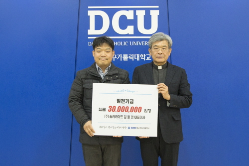 대구가톨릭대는 지난 11일 김월영 (주)솔라라이트 대표가 발전기금 3천만원을 기부했다고 14일 밝혔다.김 대표는 지난 2011년 전력공급 솔루션 개발과 전력안정화 공급 사업으로 창업했다. 2014년 대구가톨릭대 창업보육센터에 입주하면서 대구가톨릭대와 인연을 쌓았다. 이후 창업멘토 금용필 교수의 도움으로 교내외 연구 지원을 받아 기술력을 높이게 됐다.지난해 태양광 ESS출력량 예측프로그램 개발, ESS인공지능 제어세스템 출시 등 연구성과를 이뤄 대한민국 환경에너지 대상, 한국에너지공단 이사장상 등을 수상했다.지난해 보육 단계를 마치고 대구혁신도시로 기업을 이전한 뒤 매출 40억원을 달성하며 급성장하고 있다.