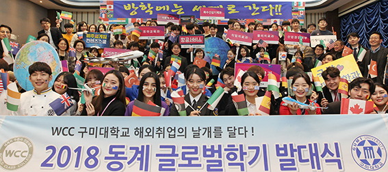 이어 "구미대는 글로벌학기를 통해 해외 취업은 물론 각종 글로벌사업에도 탁월한 경쟁력과 성과를 올리고 있다"고 강조하며 "한국을 대표하는 세계적 대학(WCC)이라는 사명감으로 글로벌 기술인재 양성에 대학의 모든 역량을 집중하겠다"고 밝혔다.