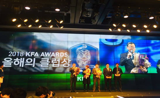 대한축구협회는 지난 18일 서울 JW매리어트 동대문 그랜드볼룸에서 ‘2018 KFA 시상식’을 열고 올해의 우수클럽상에 경주시민축구단을 비롯해 제주시청, 서울송파구여성축구단, 대전위너스타, 대구J싸커, 완주군여학생초등부축구교실 등 6개 클럽을 선정했다.