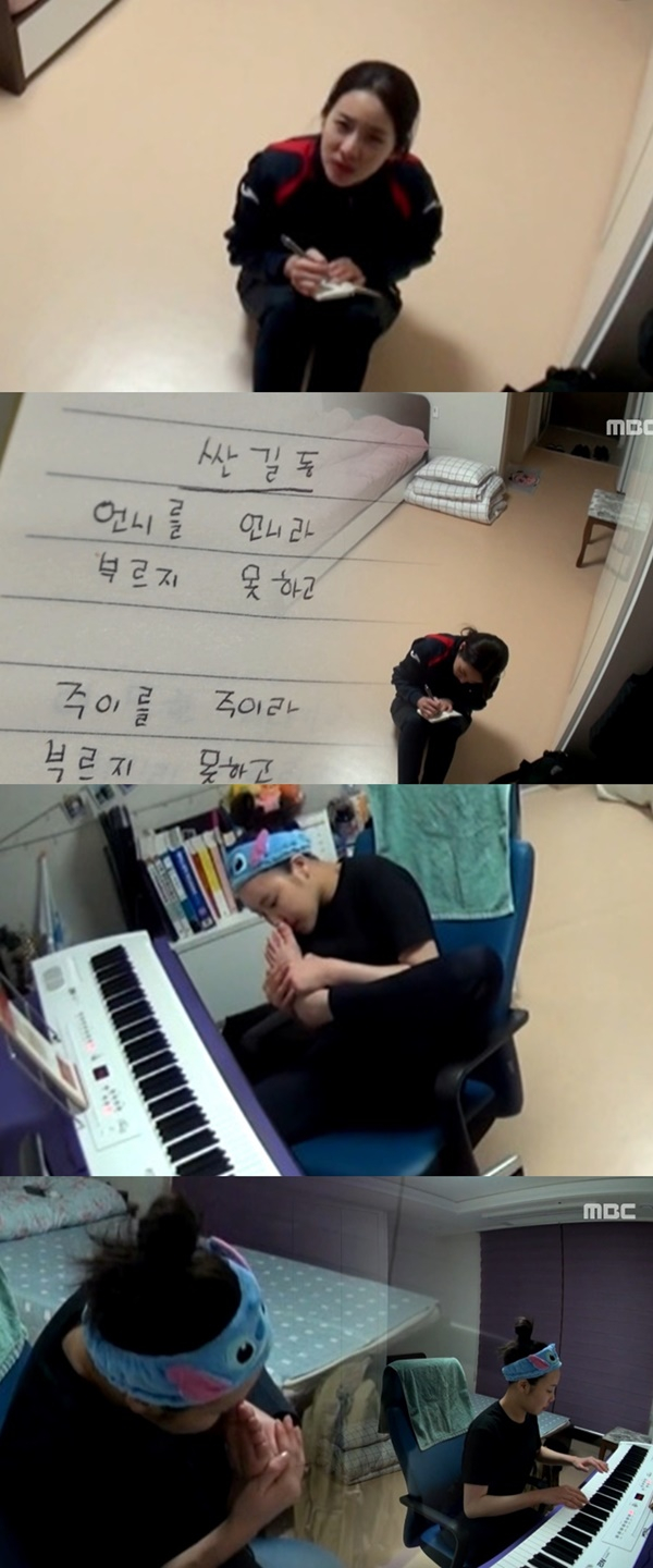 독전사 대표 방구석 시인으로 등극한 산다라박의 두 번째 작품 ‘싼길동’의 탄생 모습과 ’셀프 발냄새 피아노 연주’를 하는 주이의 모습이 담겨 있어 폭소를 자아낸다. 오늘(21일) 밤 9시 55분 방송되는 MBC '진짜사나이300'(연출 최민근, 장승민)에서는 특전사에 입소한 '독전사' 10인의 '패스트 로프 실전 훈련', '도시지역 작전 훈련', '권총 사격 훈련', '실전 격투 훈련' 모습이 담긴다. 이들은 육군 3사관학교에 이어 특전사를 무대로 '명예 300워리어'가 되기 위한 평가과정과 최종테스트에 도전하게 된다.이와 관련 '진짜사나이300' 측은 21일 방송에 앞서 네이버TV 진짜사나이300 채널(https://tv.naver.com/v/4837545)을 통해 ‘핵인싸 흥전사 시스터즈’ 산다라박과 주이의 ‘오밤중 예술혼 폭발’ 영상을 공개했다.공개된 영상에는 ‘군대 안에 갇혀 확 갇혀’라는 어깨 춤이 절로 나는 시를 탄생시킨 독전사의 대표 방구석 시인 산다라박이 두 번째 작품을 쓰는 모습이 담겼다. 그녀의 두 번째 작품의 제목은 ‘싼길동’으로 “언니를 언니라 부르지 못하고 / 주이를 주이라 부르지 못하고 / 아아.. 내 이름은 싼길동”이라며 짧지만 강렬한 ‘인싸의 욕구(?)’를 담아내 웃음을 유발한다. 산다라박이 완성된 시를 보며 “잘 썼어~”라며 탄성을 지르는 모습은 폭소를 자아낸다.이어 에너지 넘치는 ‘흥전사’ 주이가 귀여운 헤어밴드를 착용하고 키보드 피아노를 연주하는 모습이 담겨 눈길을 모은다. 다양한 곡을 선보이며 연주실력을 뽐내던 주이는 갑자기 자신의 발을 들어 냄새를 맡는 모습을 보여줘 충격은 안겨준다. 이내 자신도 냄새에 깜짝 놀란 듯 허둥거리더니 더욱더 감성적인 예술혼을 불태우며 연주를 하는 모습이 이어져 웃음을 터트리게 만든다.힘든 특전사 훈련 속에서도 산다라박과 주이는 지치지 않는 열정과 에너지로 동료는 물론 시청자들에게 깨알 웃음을 선사하며 응원의 박수를 받고 있는 상황. 진정한 ‘독전사’로 거듭날 ‘핵인싸 흥전사 시스터즈’ 산다라박과 주이의 활약에 더욱 관심이 집중된다.독전사의 ‘핵인싸 흥전사 시스터즈’ 산다라박과 주이이 남다른 감성(?)으로 예술혼을 불태운 현장은 오늘(21일) 밤 방송되는 ‘진짜사나이300’을 통해 확인할 수 있다.최정예 육군 '300워리어'를 향한 두 번째 무대 특전사에 도전하는 오지호, 이정현, 오윤아, 김재화, 안현수, 매튜 다우마, 홍석, 감스트, 산다라박, 주이 ‘독전사’ 10인과 ‘백골부대’에서 ‘300워리어’에 도전하는 박재민, 김재우, 라비, 셔누, 루카스, 최윤영, 나르샤, 김희정, 조현, 은서의 '진짜사나이300'은 오늘(21일) 밤 9시 55분에 방송된다.<사진제공> MBC ‘진짜사나이300’, MBC 예능연구소
