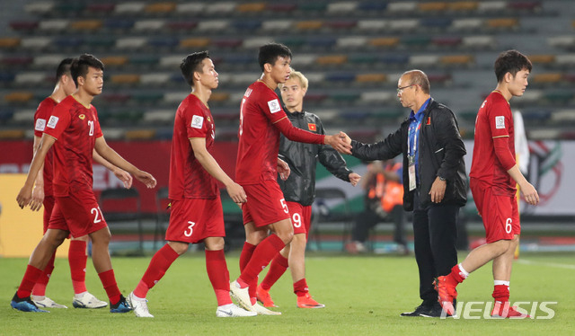 잘 싸웠으나 마지막 고비를 넘기지 못했다. 박항서 감독의 베트남이 2019 아랍에미리트(UAE) 아시안컵을 쓰라린 역전패로 시작했다. 박 감독이 이끄는 베트남 축구대표팀은 8일 오후 10시30분(한국시간) 아랍에미리트(UAE) 아부다비의 자예드 스포츠 시티 스타디움에서 이라크와의 열린 2019 UAE 아시안컵 D조 조별리그 1차전에서 2-3으로 졌다. 12년 만에 아시안컵 본선 무대를 밟은 베트남은 후반 종료 직전 역전골을 헌납해 무릎을 꿇었다. 지난 대회 4강 진출팀인 이라크와 마지막까지 대등하게 겨루며 아세안축구연맹(AFF) 스즈키컵 우승팀의 체면을 세운 것에 위안을 삼았다.베트남의 남은 상대는 이란, 예멘이다. 2차전 상대인 이란은 버겁지만, 조별리그 마지막 경기에서 만날 예멘과는 충분히 해볼만 하다. 예멘을 잡는다면 조 3위로 16강행을 바라볼 수 있다. 베트남은 경기 초반 무리한 공격보다는 수비벽을 촘촘히 쌓으며 상대가 힘을 빼길 기다렸다. 버티던 베트남에게 행운이 따랐다. 전반 24분 이라크 수비수 알리 파에즈가 자책골을 넣었다. 응우옌 쿠앙 하이와 골키퍼가 경합을 벌이던 중 파에즈가 달려들었으나 공은 그의 발에 맞고 이라크 골문으로 향했다. 이라크는 전반 35분 균형을 맞췄다. 베트남 수비수 도 주이 만이 흘린 공을 모하나드 알리가 낚아채 드리블 돌파 후 오른발 슛으로 동점골을 뽑았다. 선제골로 달아오른 베트남의 분위기도 한 풀 꺾였다. 베트남은 금세 전열을 정비했고, 7분 만에 다시 치고 나갔다. 응우옌 트룽 호앙의 날카로운 슛을 골키퍼가 쳐내자 응우옌 콩 푸엉이 달려들면서 마무리했다. 이번에는 이라크 수비수가 걷어낸다는 공이 응우옌 콩 푸엉의 발에 맞고 골이 됐다. 이라크의 저항도 만만치 않았다. 1-2로 끌려간 채 후반을 맞이한 이라크는 후반 15분 후맘 타레크의 골로 2-2를 만들었다.  두 팀은 남은 시간 승리를 위해 모든 힘을 쏟았다. 마지막에 웃은 팀은 이라크였다. 후반 45분 알리 아드난의 왼발 프리킥이 득점으로 연결됐다. 골키퍼가 몸을 던졌으나 공은 손을 쓰기 어려운 코스로 형했다. 박 감독은 빈 물병을 발로 차며 쓰린 속을 달랬다. 한편 이날 경기장에는 2000여명의 베트남팬들이 몰려 아시아 최고의 무대에 나선 자국 선수들을 격려했다. 베트남 대표팀의 상징색인 붉은색 티셔츠와 머리띠를 착용한 이들은 90분 내내 열정적인 응원을 선보였다. 경기 전 선수 소개 때 박 감독의 얼굴이 전광판에 등장하자 엄청난 환호를 보내기도 했다. E조의 북한은 사우디아라비아와의 첫 경기에서 0-4로 대패했다. 전반 28분과 37분 연속골을 헌납한 북한은 후반에도 두 골을 추가로 빼앗겨 대패의 희생양이 됐다. 이탈리아 세리에B(2부리그) 소속이라는 북한 선수 중 흔치 않은 이력의 소유자인 한광성은 전반 44분 경고 누적으로 퇴장 당해 단단히 체면을 구겼다. 북한은 카타르(13일), 레바논(18일)전을 앞두고 있다. 두 팀 모두 까다로운 상대라 조별리그 통과에 적신호가 켜졌다. 이날 패배로 아시안컵 12경기 무승이라는 좋지 않은 기억도 이어갔다. 북한은 1980년 시리아전 2-1 승리 이후 2무10패에 그쳤다.   뉴시스